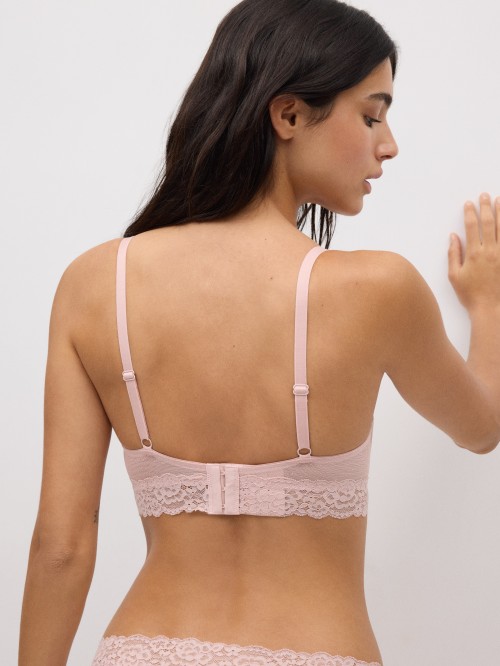 Sujetador estilo bralette sin aro y con relleno. Una única pieza que envuelve la figura en encaje.